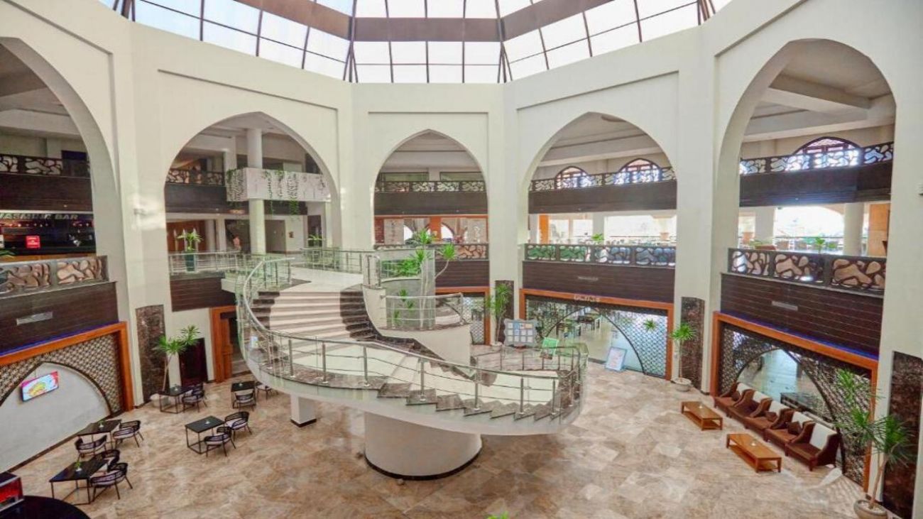 Построен в арабски стил, с модерно обзаведени стаи, разполага със собствен частен пясъчен плаж. Ползването на чадъри и шезлонги е безплатно.