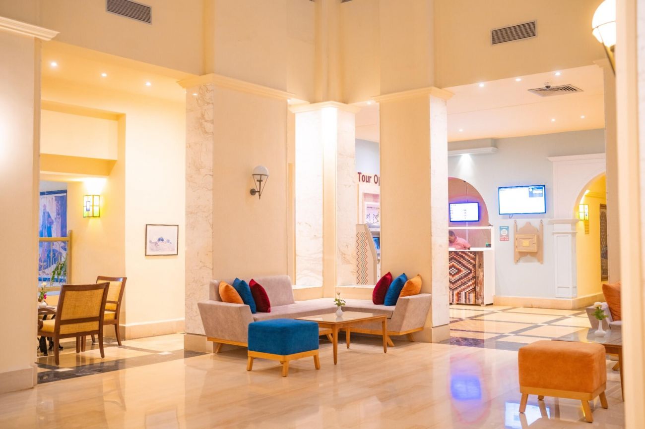 Основен ресторант, нощен снакс от 23 ч до полунощ - 3 пъти в седмицата, бар на плажа, а ла карт ресторант на плажа с италианска и тунизийска кухня (срещу заплащане, в летния сезон едно безплатно посещение за престой с предварителна резервация - ресторантът работи 6 дни в седмицата при минимум 20 души), лоби бар, бар Мира, бар на басейна, бар на релакс басейна, диско бар, мавританско кафене, 2 открити басейна, закрит басейн (отопляем от ноември до април), 3 водни пързалки, СПА център, магазини, анимация, денонощна рецепция, обмяна на валута.