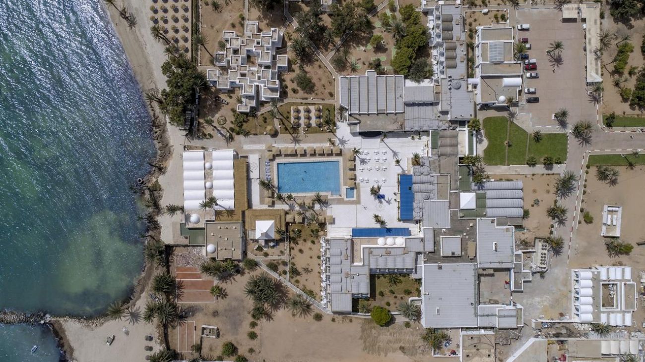 Намира се в туристическия район Агир, на 1.5 км от центъра на едноименния град, на 8.5 км от Мидун, на 24 км от столицата Хумт Сук, на 28 км от летище Джерба-Зарзис, на брега на морето. Хотелът е построен през 1987 год., последна реновация - през 2019 год