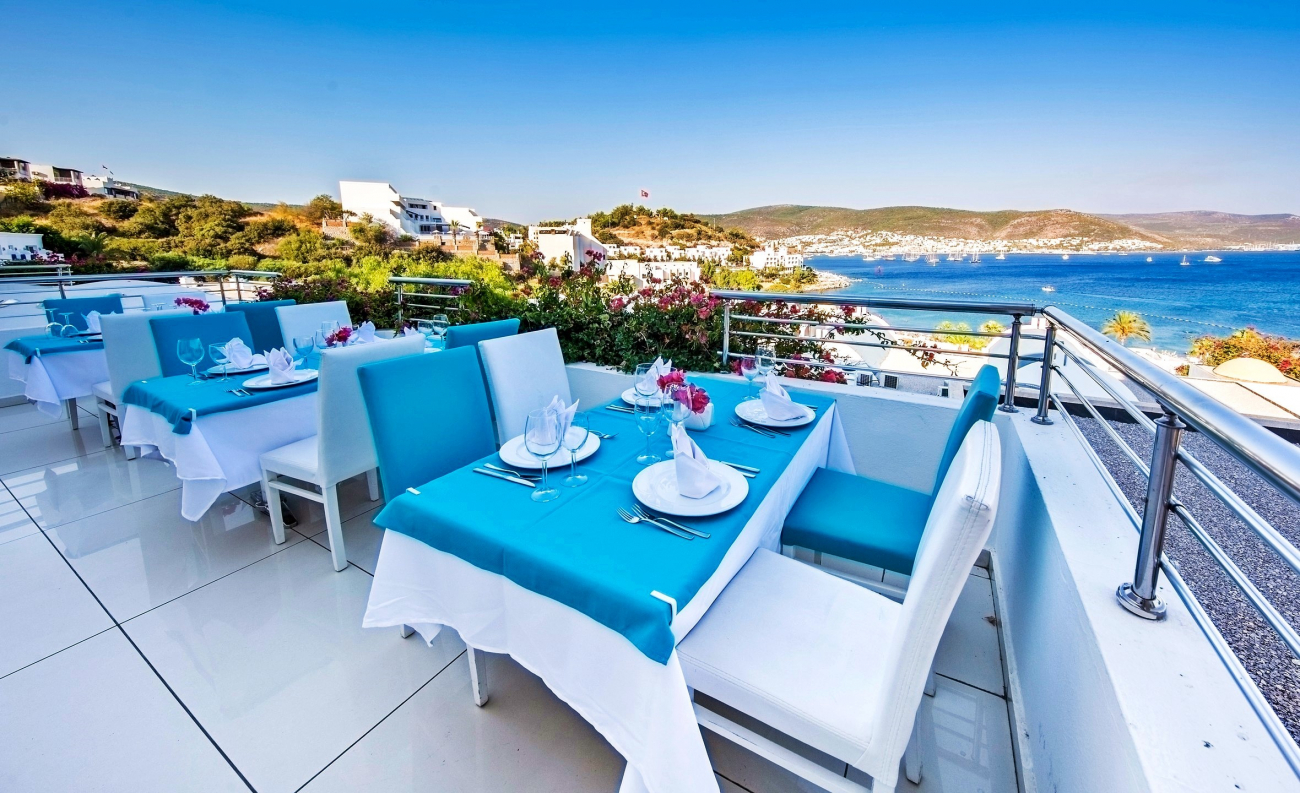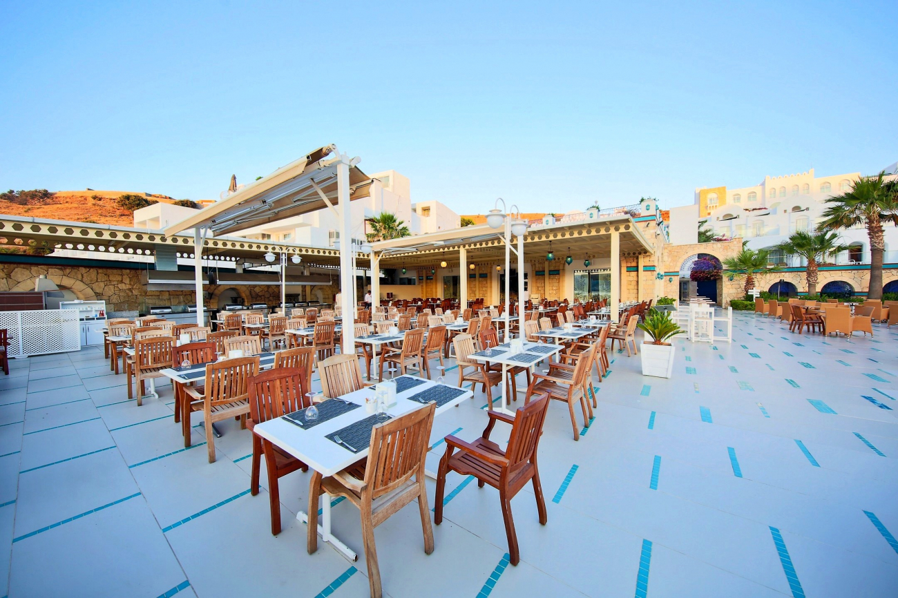ULTRA All Inclusive концепция с местни и вносни алкохолни и безалкохолни напитки 24 часа в денонощието. Открит и закрит ресторант. Турският ресторант на хотела предлага мезета и традиционни кебапи. Има също средиземноморски ресторант, специализиран в приготвянето на морски специалитети. Гостите могат да се насладят на питие в някой от петте бара, сред които снек бар, бар на плажа и витаминен бар.