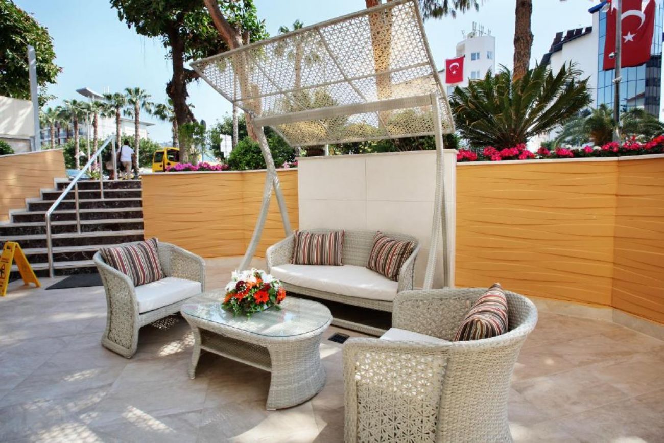 Намира се на 120 км от летище Анталия, на 130 км от центъра на Анталия, на 1 км от центъра на Алания, на 100 м от брега на морето. Построен през 1987 г., на обща площ от 1.700 м2. Реновиран 2013 г.