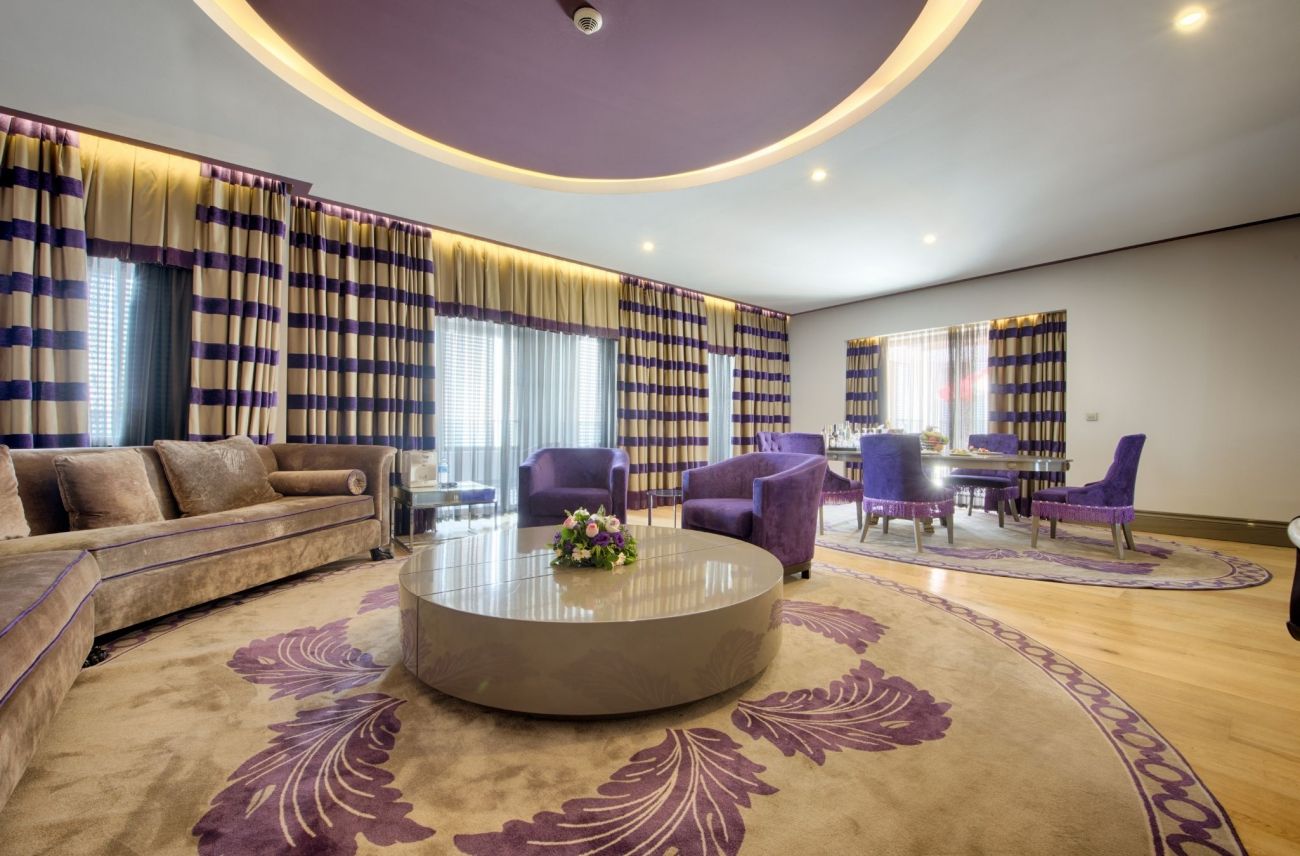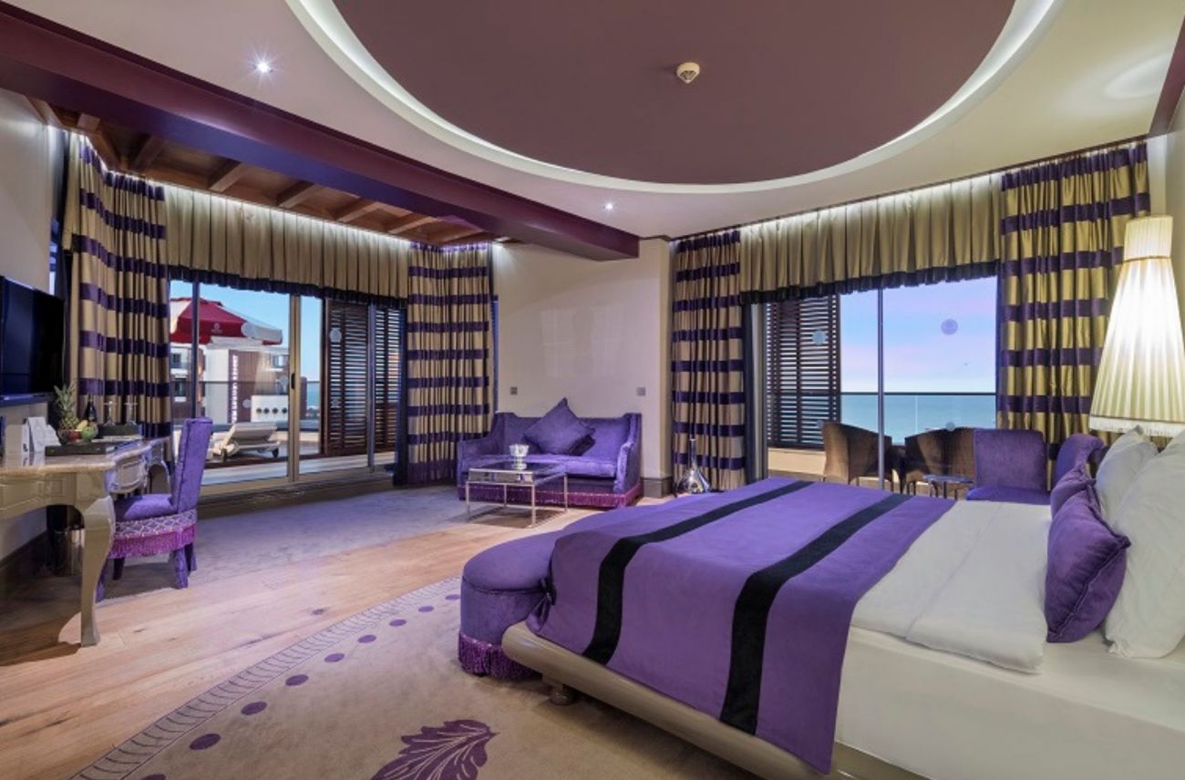 204 Luxury room (стаи с френски балкон - 4 от които за инвалиди – 45-62 м2), 55 Deluxe room (70-75 м2), 36 Superior room (с джакузи на балкона - 124 м2), 100 Family room (2 спални, 1 баня 37-43 м2), 8 Suite room (1 спалня, хол, 1 баня - 124 м2), 10 Premium Suite room (1 спалня, хол, 1 баня, джакузи на балкона - 160 м2), 4 Executive Residence Room (2 спални, хол, 1 баня - 186 м2), 2 King Residence Room (2 спални, хол с кът за хранене, 2 бани - 450 м2), 1 Presidential Residence Room (2 спални, хол с кът за хранене, 2 бани - 500 м2).