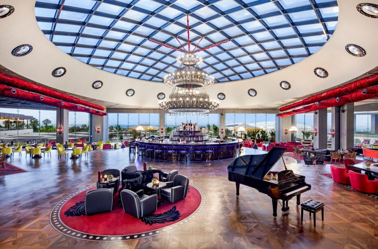Основен ресторант, ресторант към клубните стаи, 4 а-ла-карт ресторанта (рибен, италиански, барбекю – 1 безплатно посещение на 1 от ресторантите при минимум 7 нощувки), 24/7 интернационален ресторант а-ла-карт, суши бар, сладкарница, снек ресторант, гьозлеме, 11 бара, 4 открити и 1 закрит басейн, аквапарк, увеселителен парк, кино, амфитеатър, жива музика, специални шоу програми, дискотека, СПА център, магазини, 5 конферентни зали, паркинг.