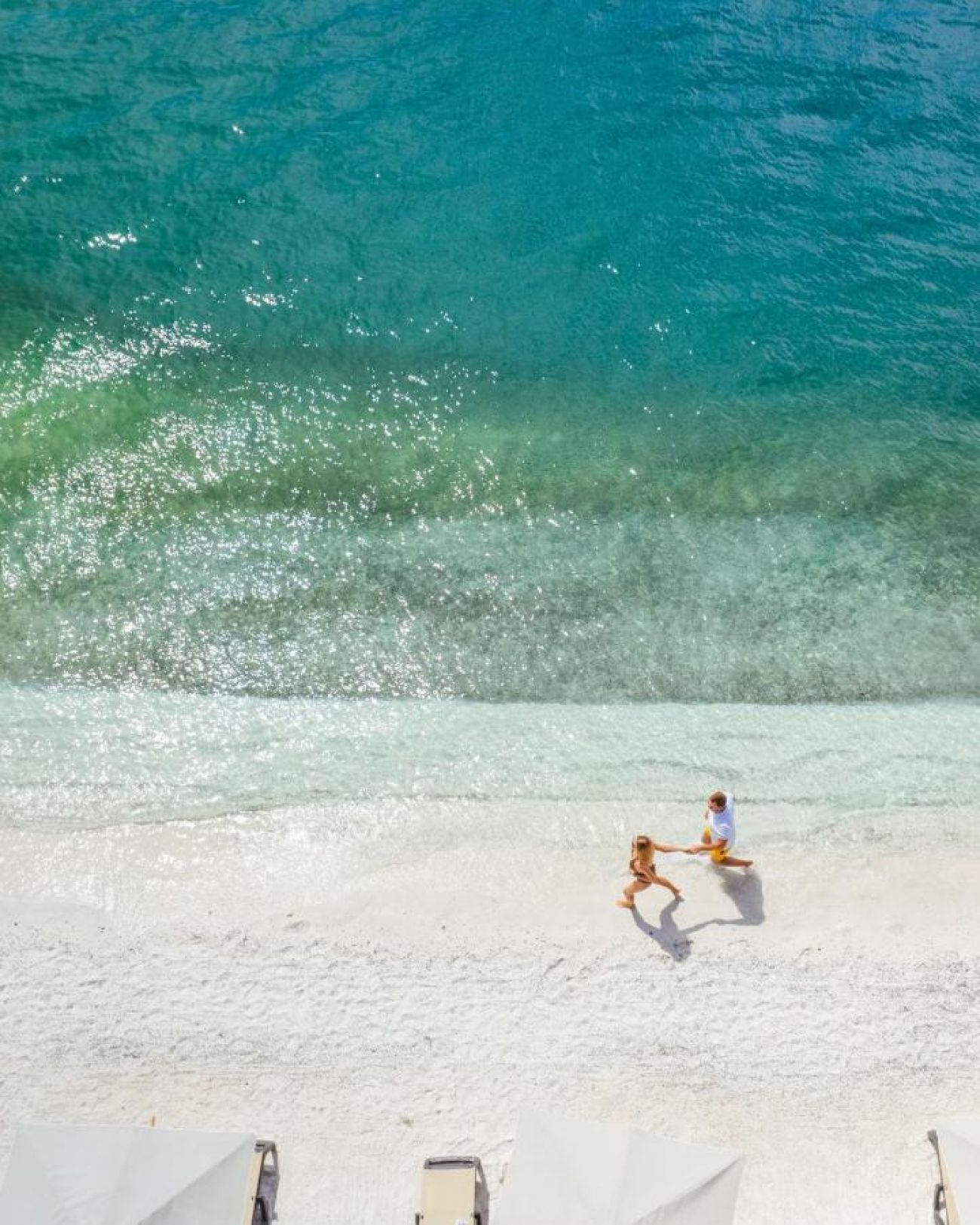 Собствен, пясъчен – чадъри и шезлонги на плажа и при басейна – безплатно, плажни кърпи – безплатно. Луксозни шатри - с предварителна резервация, срещу заплащане). Предлага се луксозно обслужване през целия ден. Всяка шатра разполага със сейф и мини бар, предлагат се списания, карти за игра Rixos, пъзели, шах, судоку.