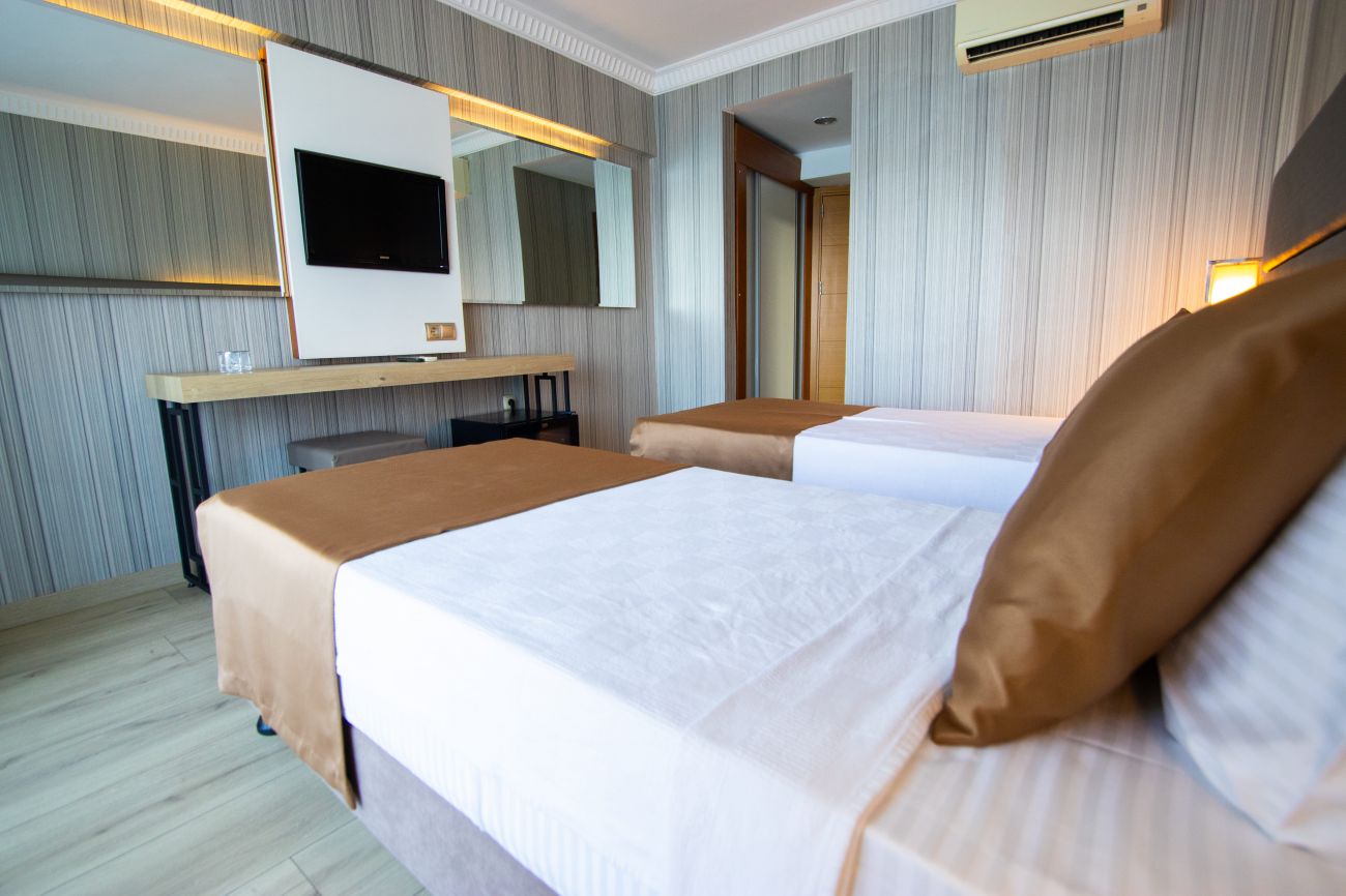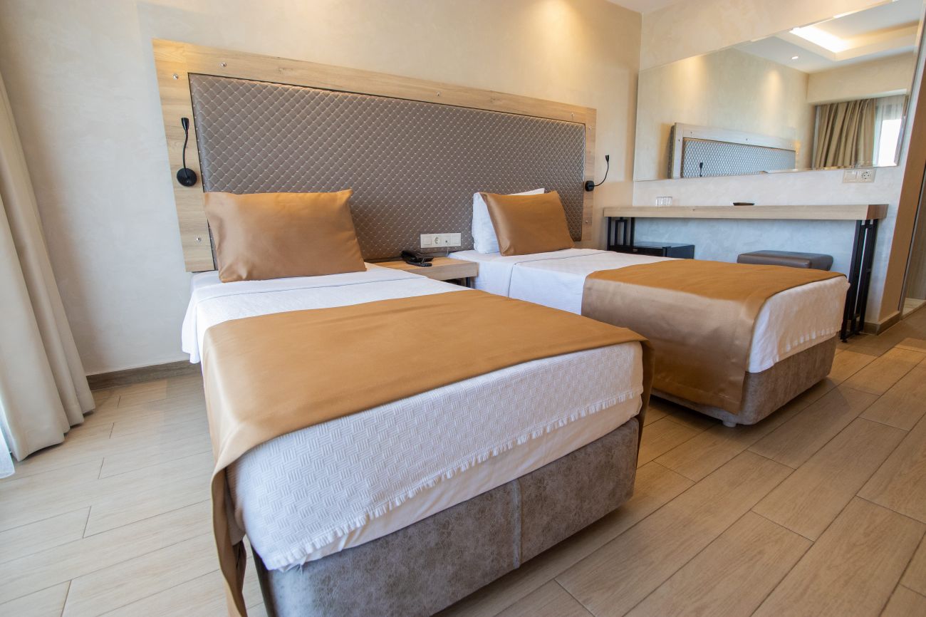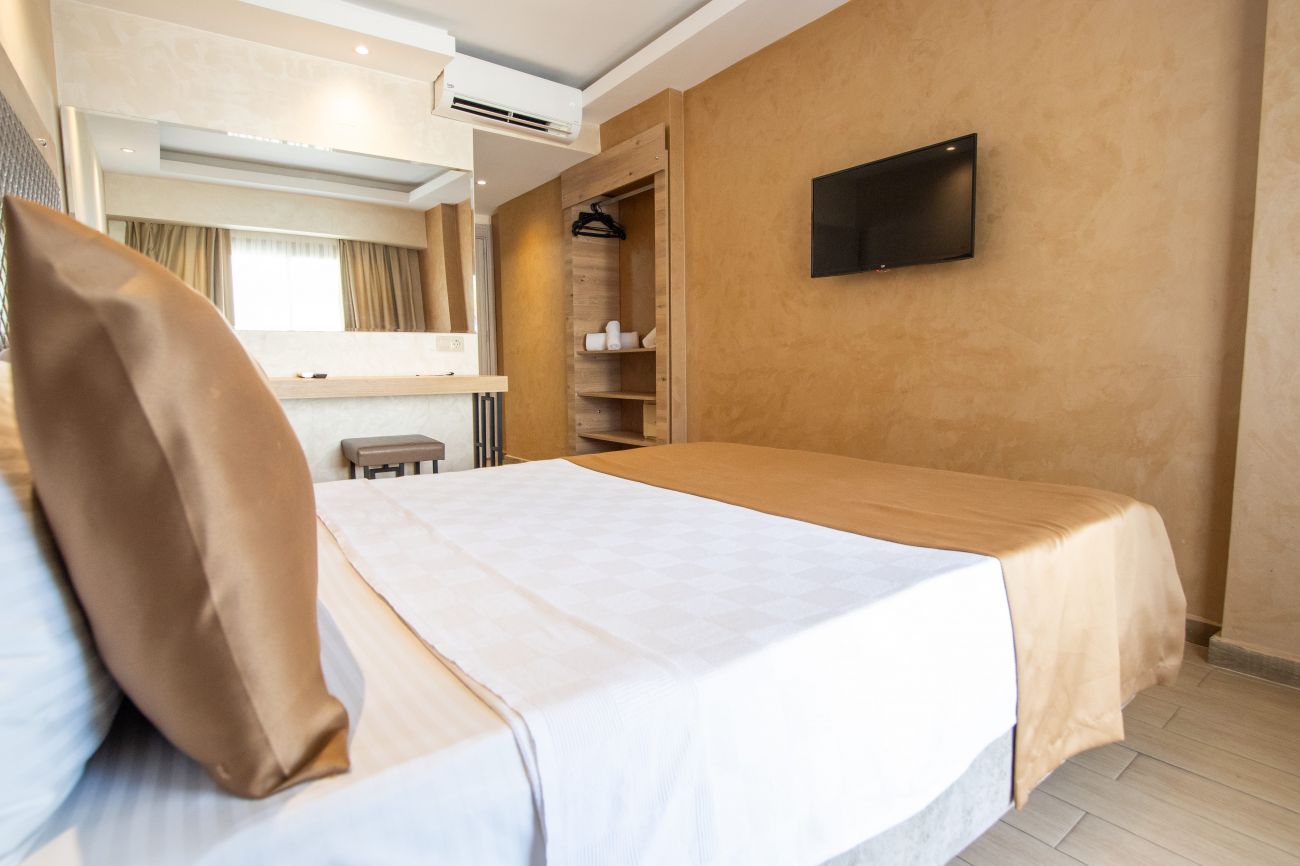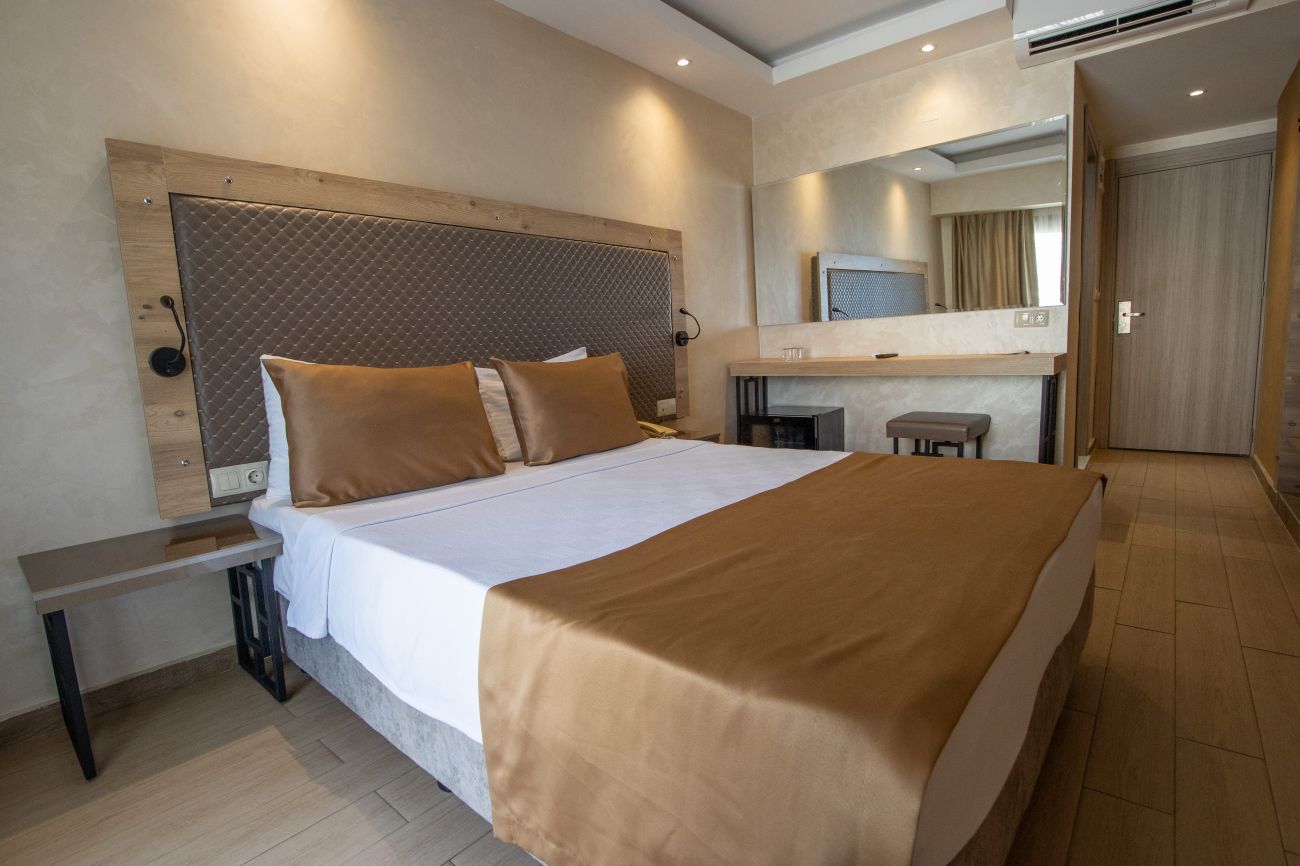 Всички стаи са оборудвани с климатик, телевизор, телефон, баня с душ, сешоар, минибар (зарежда се безплатно с вода), сейф (платен), балкон/тераса, WI-FI ( безплатен). Почистване на стаите и смяна на кърпи - всеки ден, смяна на спално бельо - 2 пъти седмично.