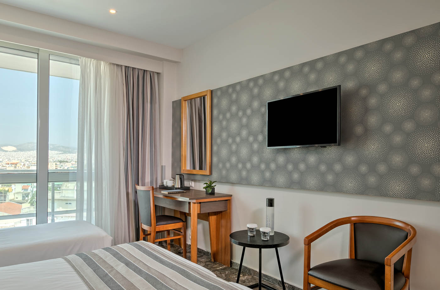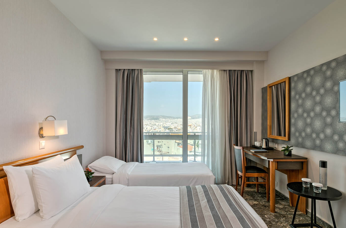 В хотела: басейн на покрива, чисто нов напълно оборудван фитнес център, 2 ресторанта и 3 бара, включително и открит бар на покрива. На разположение на гостите в хотела има изцяло реновирани и климатизирани стаи за настаняване с безплатен неограничен Wi-Fi достъп и денонощна рецепция. Ресторантите са специализирани в гръцка кухня, средиземноморски ястия и прясна риба.