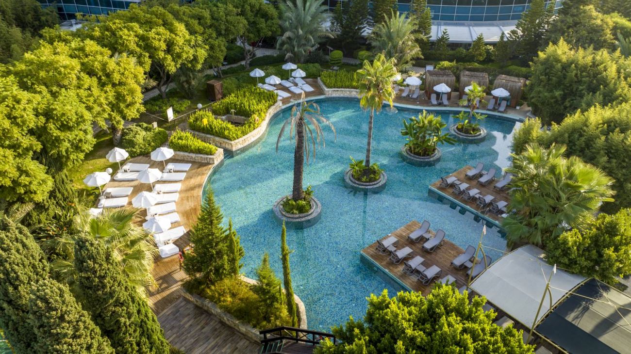 Хотелът се намира на 10 км. от летище Анталия, на брега на морето. Построен с обща площ от 62000м2.